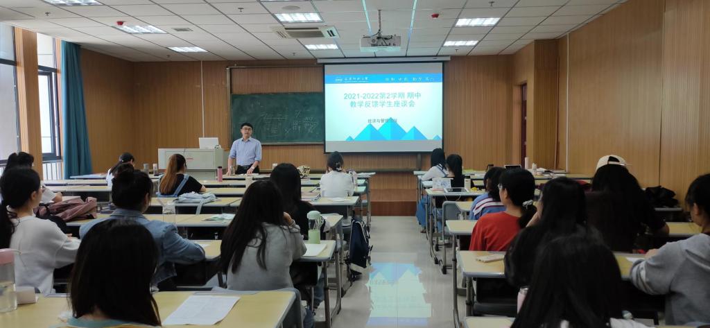 于5月17日下午在M212教室召开期中教学反馈学生座谈会。学院副院长黄先军、教学秘书、教务员及各班学生代表参会。会议由副院长黄先军主持,他首先强调了期中教学检查的重要性,并要求与会学生代表要严肃认真、客观全面地反馈班级教学情况。
