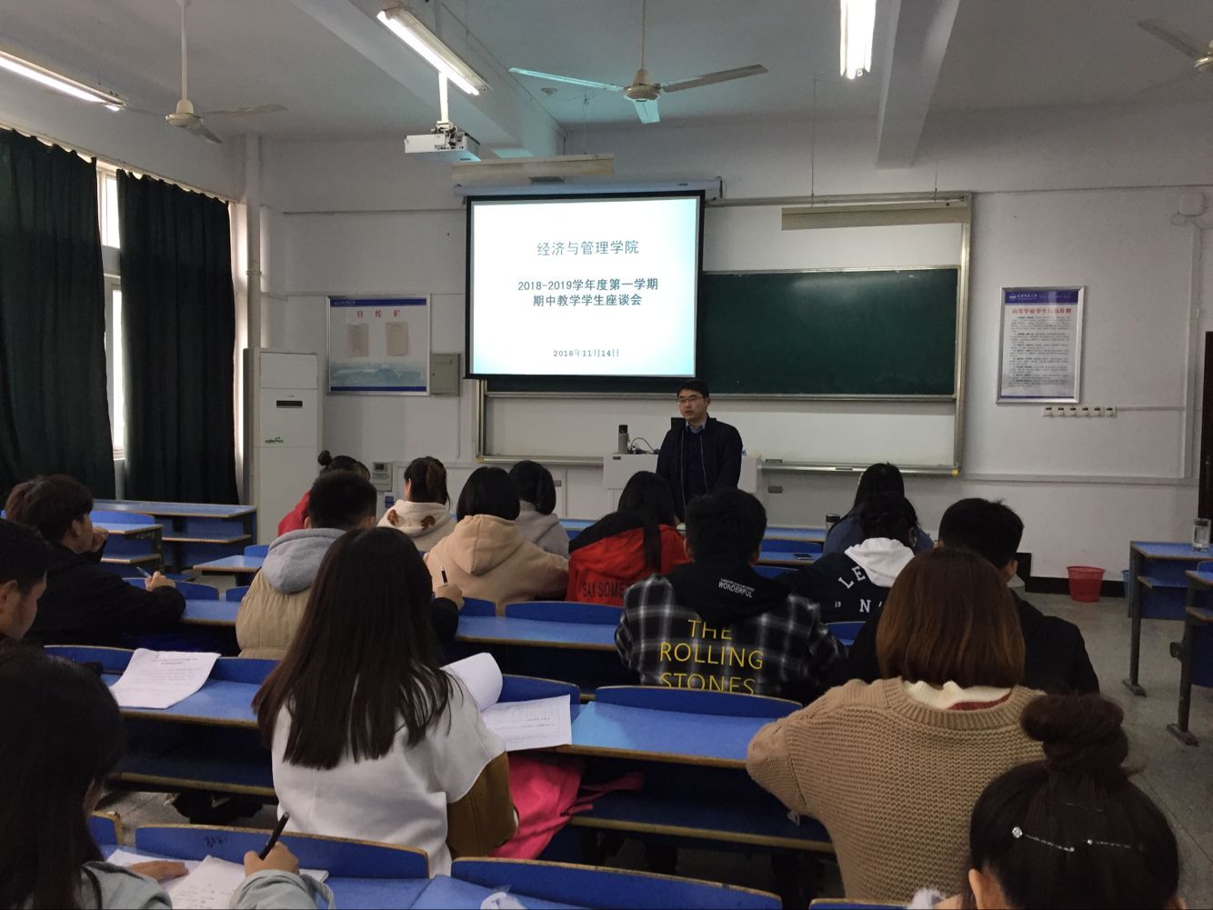 在龙山校区C楼401教室组织召开2018-2019学年度第一学期期中教学学生座谈会。会议由学院副院长黄先军教授主持,教务员老师以及来自3个年级的40余名学生代表参加了座谈会。
