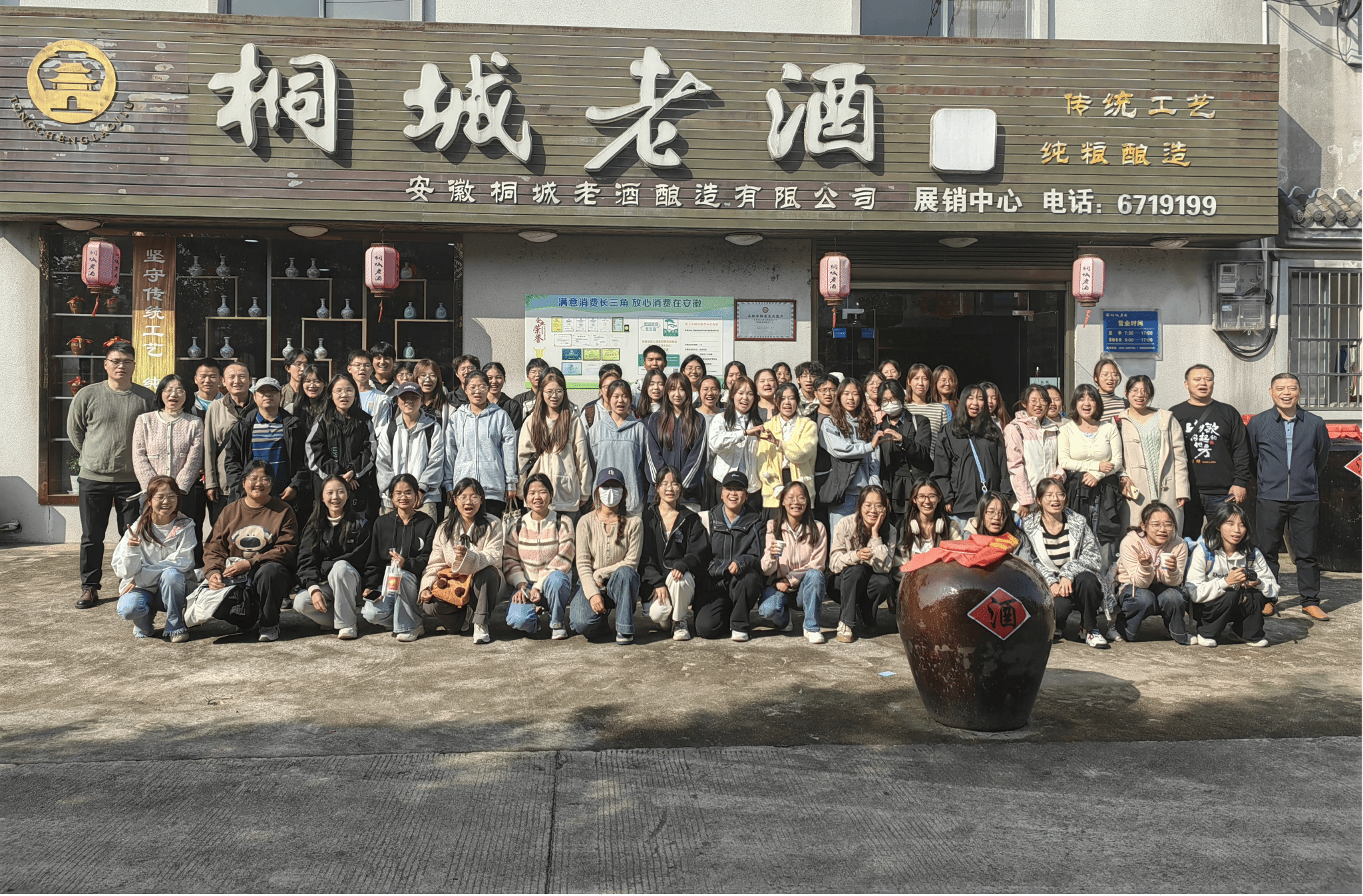 11月2日,工商管理类专业老师带领2024级工商管理类专业全体同学以及部分国际商务专业研究生,前往安徽桐城老酒酿造有限公司和安徽天乐进出口有限公司开展专业认知实践活动。此次活动旨在通过实地探访企业,让学生深入了解企业运营流程,进一步提升专业素养与实践能力。