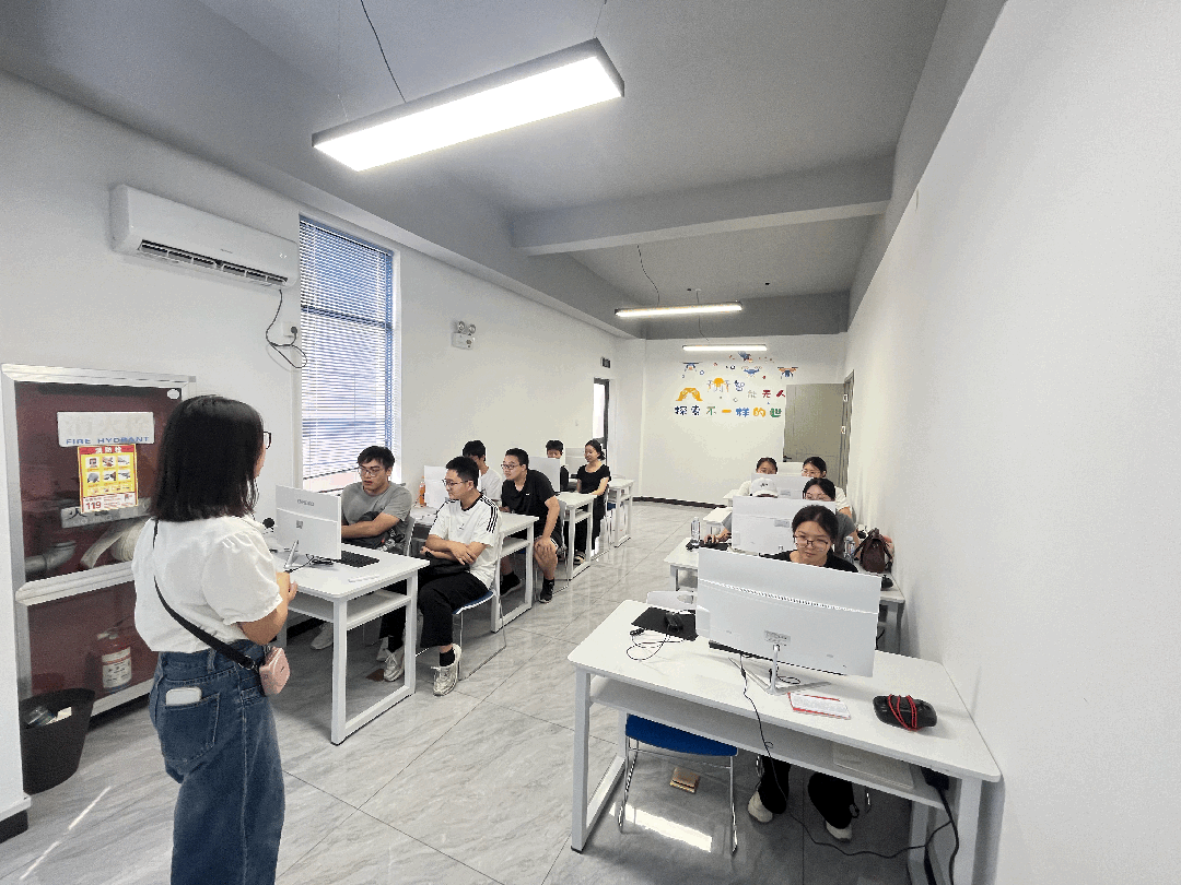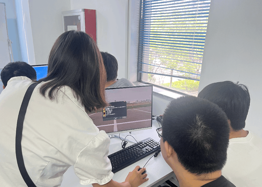 为实现理论与实践的深度融合,极铂飞航为同学们精心设计了“理论授课——模拟飞行——实操体验”三位一体的实践环节。在专业飞手的指导下,同学们分组轮流学习了无人机基础理论,并通过专业模拟器沉浸式体验了无人机操控员的日常工作流程。在实操环节,同学们亲手操控无人机完成了起飞、悬停等基础动作,零距离感受到了无人机技术的独特魅力与精准操控的挑战。