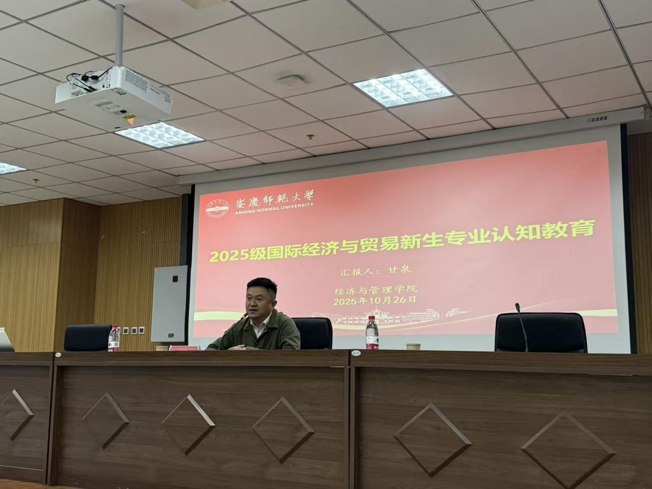 于M112会议室成功开展2025级国际经济与贸易专业新生认知教育讲座。本次活动特邀奇瑞商用车国际事业部海外大区经理甘泉主讲,学院副院长黄光锋主持,全体国贸专业学生参会。