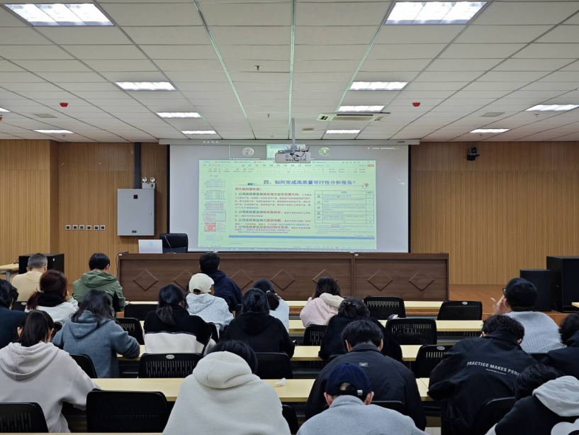 首场培训由张晶老师围绕金融科技产品设计展开专项指导。张老师结合行业前沿案例与赛事评审经验,以“银税协同赋能中小微企业融资”为核心选题,深度讲解了区块链、人工智能等技术在金融场景中的创新落地路径、完整产品方案的搭建逻辑,以及赛事评分核心标准与提质加分技巧。他强调,高水平参赛作品既要以真实严谨的数据筑牢论证根基,又要兼具模式创新与现实落地价值,努力做到专业严谨性与差异化竞争力并重。针对同学们现场提出的疑问,张老师逐一给出精准专业的优化建议,帮助大家进一步理清创作思路。