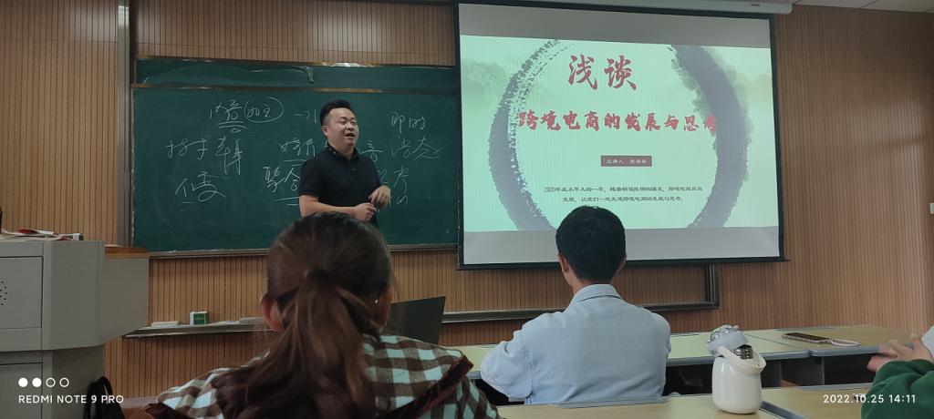 为增强2022级电子商务新生对专业的了解认知,明晰专业特点,培养专业学习热情,10月25日下午,电子商务专业开展新生专业认知教育。安徽金枪鱼网络科技公司CEO张海军和麦贝电商公司CEO刘飞寅应邀参加,电子商务教研室主任洪亮主持活动。