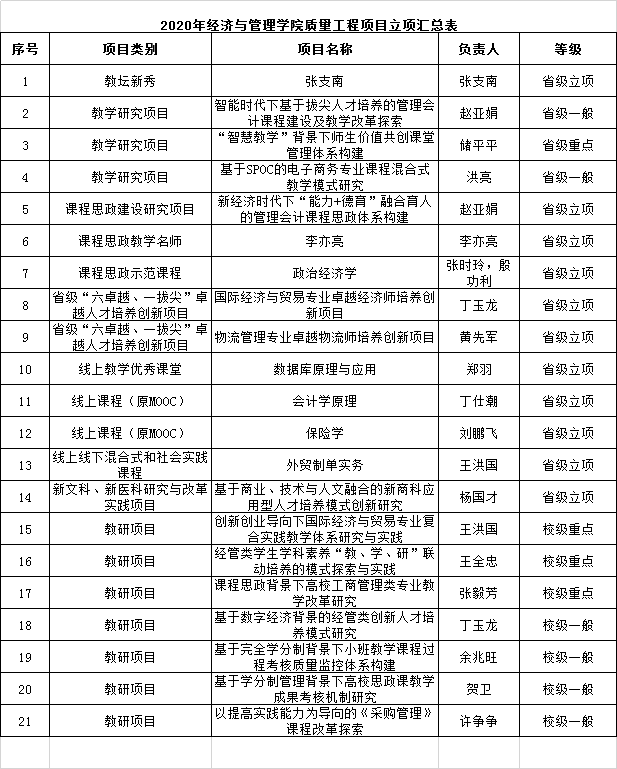 *无码流出 2020年质量工程项目立项汇总表