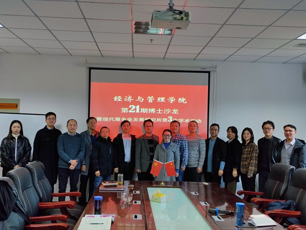 在M207会议室举办了第21期博士沙龙暨现代服务业发展研究所第3次学术交流活动,丁玉龙博士应邀做了一场题为《国家社科基金申报论证分享与交流》的学术报告,学院近二十位老师和研究生参加了这场活动。