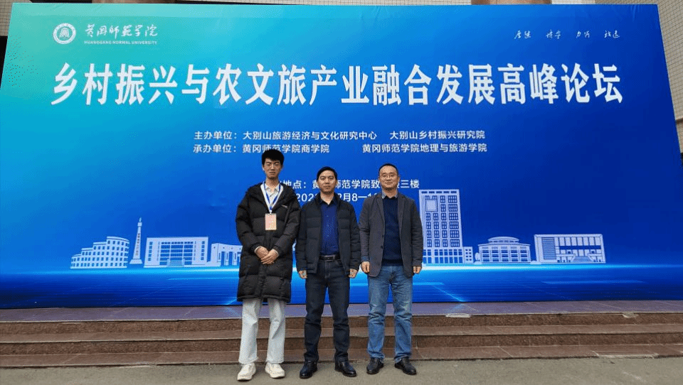 12月8日至10日,2023年乡村振兴与农文旅产业融合发展高峰论坛在湖北黄冈市举行。会议由黄冈师范学院承办,学院副院长徐俊杰教授、丁仕潮副教授、研究生张飞扬应邀参会。