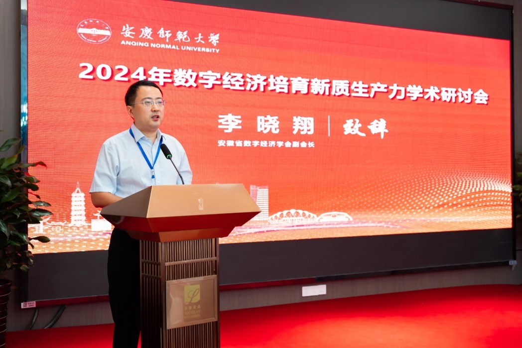 、安徽省数字经济研究中心联合承办的 “2024年数字经济培育新质生产力”学术研讨会成功举办。校党委常委、副校长刘友忠,安庆市工信局副局长黄胜云,安徽省数字经济学会副会长李晓翔教授出席开幕式并致辞。校党委常委、副校长吴琼会见了与会专家,并开展了座谈交流。科研处、服务经济社会发展处、教务处、研究生院、国际交流与合作处等部门负责人应邀参会。