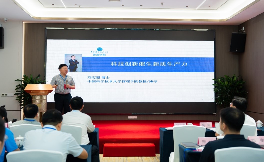 安徽省发展战略研究会会长、中国科学技术大学EMBA中心主任刘志迎教授以《科技创新催生新质生产力》为题做了分享,强调要把握新质生产力新技术特征,围绕产业链、创新链、资金链、人才链“四链”深化改革,调整生产关系适应新质生产力发展。