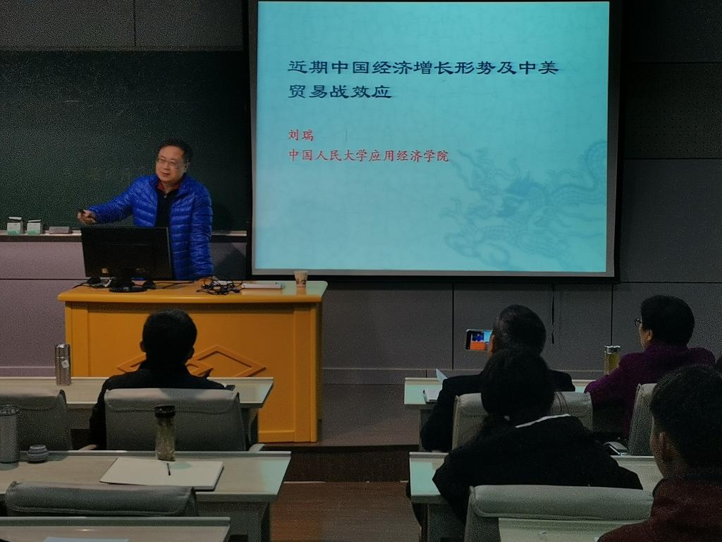 研究生、17级国贸、18级金融举办了题为“近期中国经济增长形势及中美贸易战效应”的学术讲座。讲座由院长杨国才教授主持,部分教师参会聆听了报告。