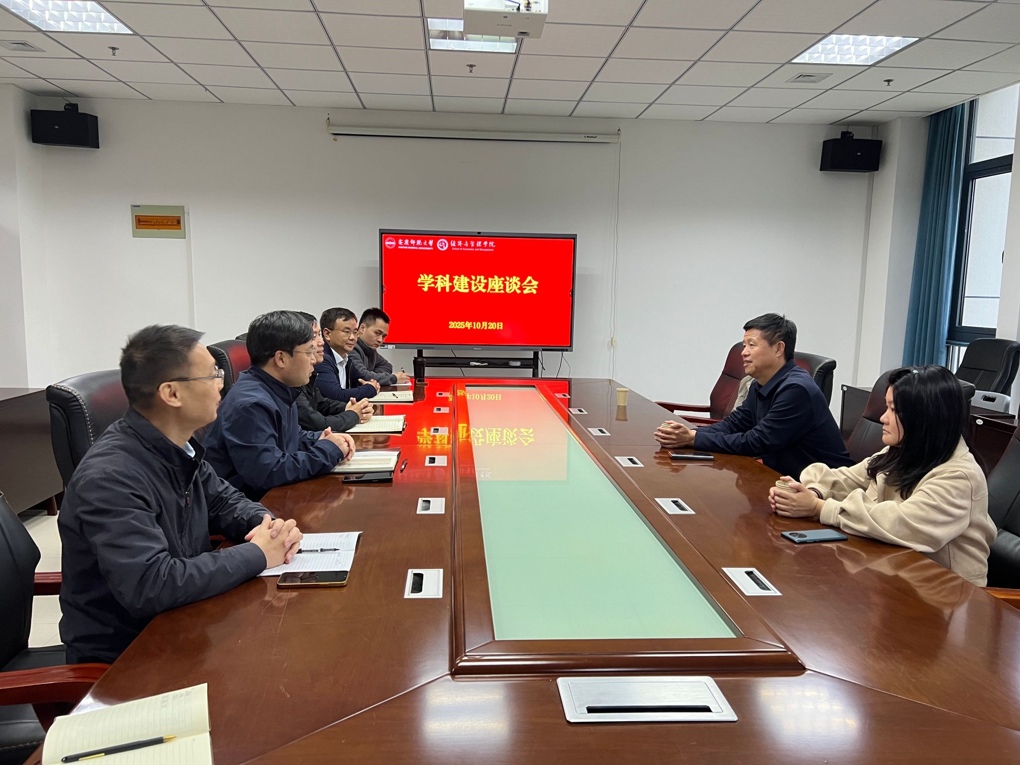 院长徐俊杰围绕学院学科与专业建设作了详细汇报。他重点介绍了学院在学科方向凝练、科研团队建设、国际生培养体系完善及服务地方经济社会发展等方面取得的主要成效,并结合学院实际分析了当前存在的困难与问题,阐述了下一阶段的建设思路和发展规划。