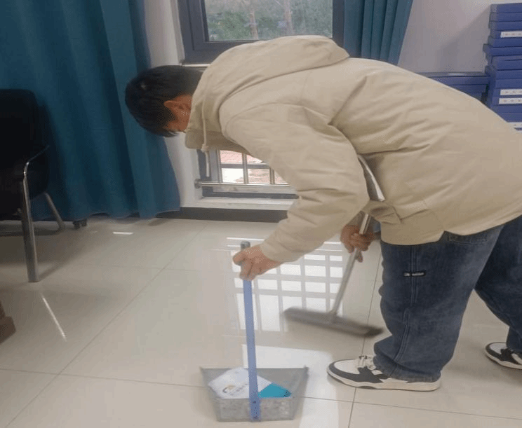 3月5日下午,学生党员们积极投入到学院的教室与办公室的卫生清理工作中。他们细心地清理垃圾、打扫地面、擦洗桌子并整理文件,确保环境的整洁与舒适。