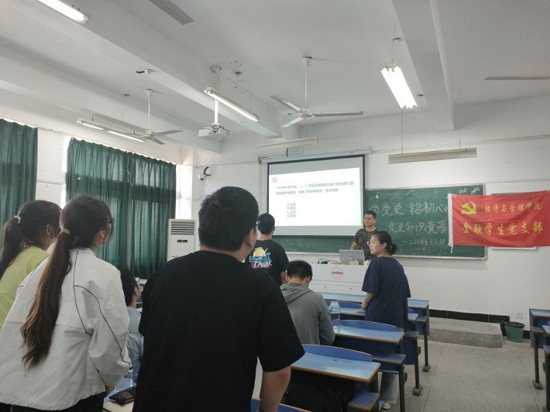 为深入学习贯彻习近平总书记在党史学习教育动员大会上的重要讲话精神,扎实推进党史学习教育走深走实,6月9日,金融学生党支部在文溯楼505教室开展“学党史 忆初心”主题党日活动,活动由支部书记洪春燕主持。