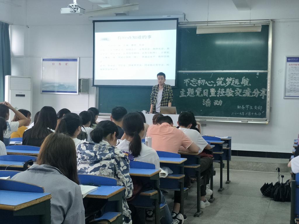 财务学生党支部举办“不忘初心,筑梦远航”主题党日暨经验交流分享活动。财务学生党支部书记徐菲、财务学生支部全体党员及部分低年级入党积极分子参加此次活动。
