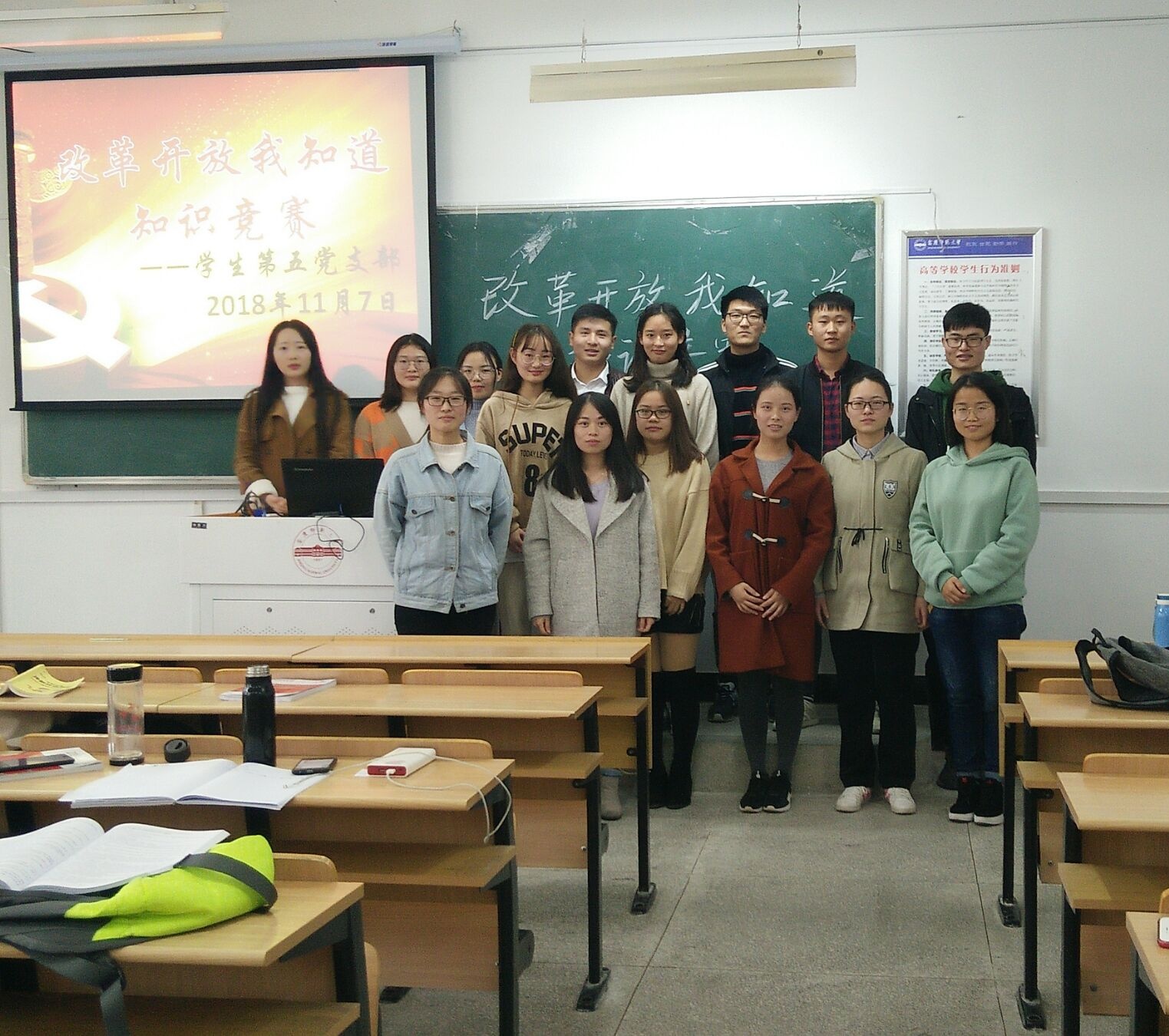 学生第五党支部在C501教室开展“改革开放我知道”知识竞赛主题党日活动。学生第五党支部全体党员参加了此次活动,活动由学生第五党支部书记洪春燕主持。
