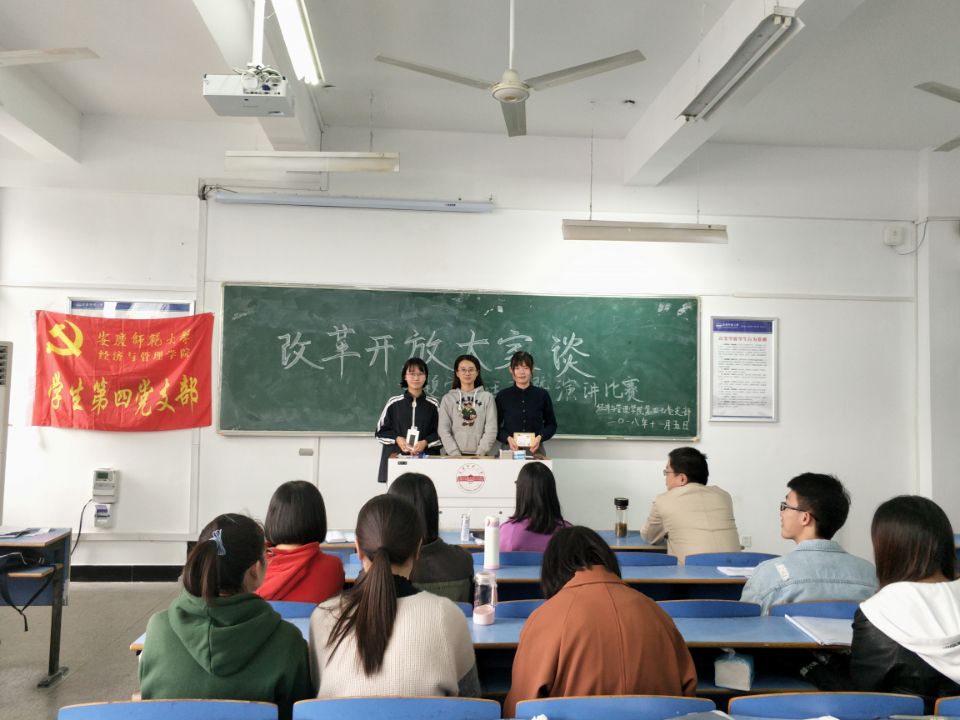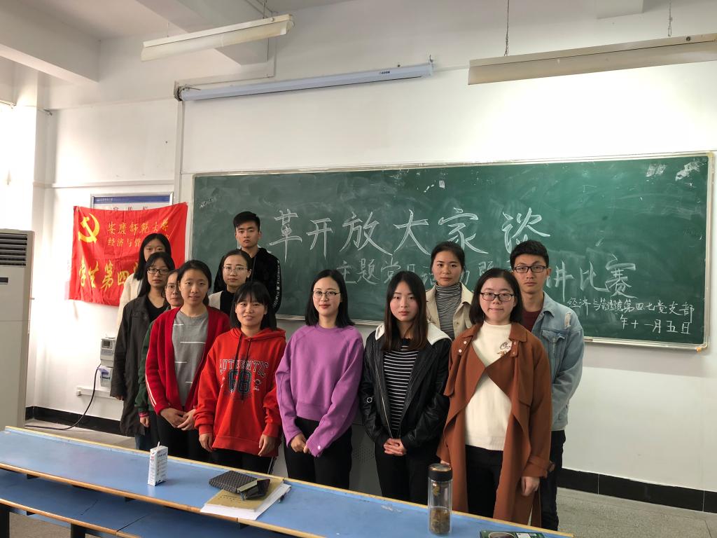 学生第四党支部、学生第七党支部在C505教室开展“改革开放大家谈”主题党日活动暨演讲比赛。学生第四党支部书记徐菲、学生第七党支部书记孙栎简、学生第八党支部书记贺卫,学生第四党支部、第七党支部全体党员参加此次活动。