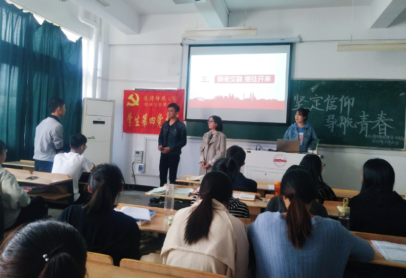 活动伊始,支部书记徐菲详细介绍了支部的基本情况,发展党员的工作流程,入党申请书、思想汇报等发展党员工作常用文书的要求。她强调,中国共产党是很严谨、有纪律、有组织的政党,入党的程序和要求十分严格。她希望,2018级新生能坚定信仰,言青春之志,力青年之行。