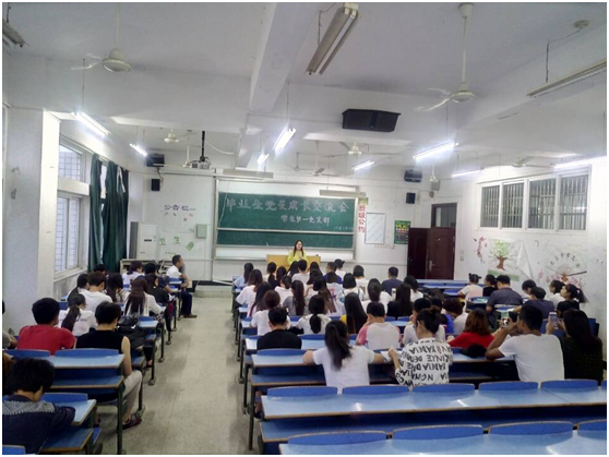 学生第一党支部在C楼404教室举办了毕业生党员交流会。魏秀秀、罗田、李凤、郭然作为优秀毕业生党员代表做了交流发言,支部党员和入党积极分子80人参加交流会。