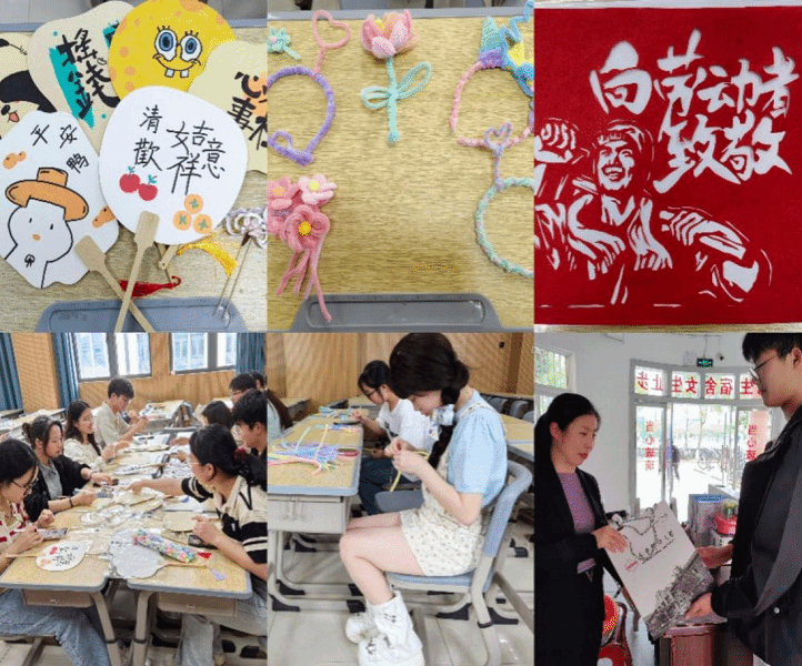 同时,学院还开展了“妙手生花,感恩同行”特色活动。同学们纷纷展示自己的才艺,有的在团扇上绘制图案,有的巧手编织精美的扭扭棒手工艺品,还有的细心制作刻纸艺术作品。活动结束后,同学们将自己的作品作为礼物赠送给辛勤工作的宿管阿姨们,以表达感激之情。