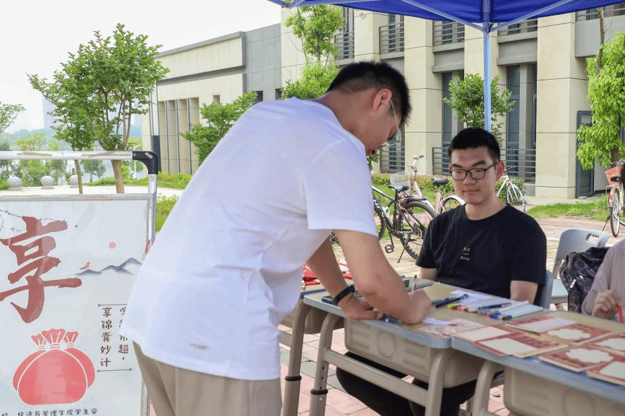 在“学赶帮超,锦囊妙计”环节,低年级同学们在锦囊中领取高年级同学分享的学习经验。工商管理专业2023(1)班的安姝萍同学领取到一名学姐的暖心妙计。“学会运用课本知识,重视输出,实践可以帮助我们更好地了解和掌握相关知识点。”她高兴地向同学展示这一锦囊,并表示自己未来将把这一妙计运用到学习中,不断提高自己的知识应用能力。