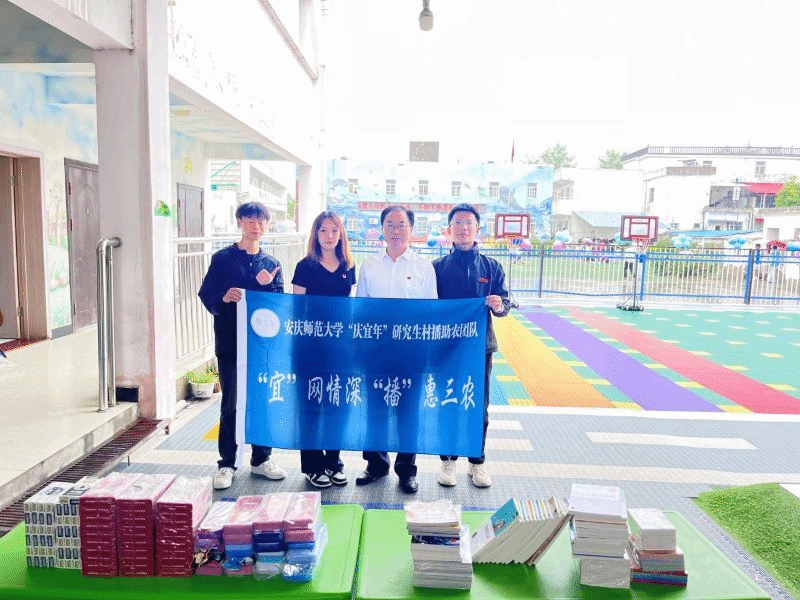 研究生党支部部分成员及研究生村播助农团队成员,于5月31日上午来到安庆市大观区海口镇镇江村,向当地的镇江小学的学生捐赠百余册图书及学习用品。