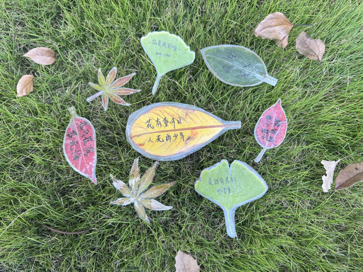 在M楼开展以“秋意渐浓,落叶寄情”为主题的心理健康活动,活动吸引了150余名同学参与。
