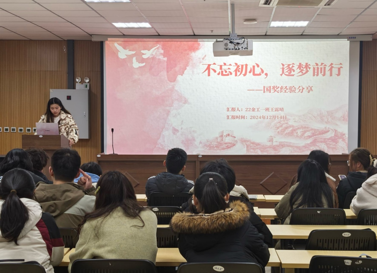 在M112举办“不忘初心,逐梦前行”学习经验交流会。学院2023-2024学年国家奖学金获得者及2024级全体新生参加。