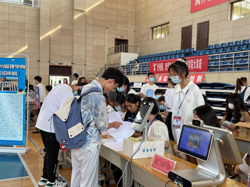 在校体育馆喜迎2022级新生报到,学院党政班子亲临迎新现场,学院团学负责人、新生辅导员老师以及300余名迎新志愿者同学共同参与迎新活动。