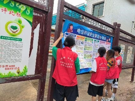 从6月27日开始,志愿者们不惧烈日,挨家挨户发放防电信诈骗的宣传教育单,通过图片展示、案例讲述等形式向村民们介绍如何防范电信诈骗。