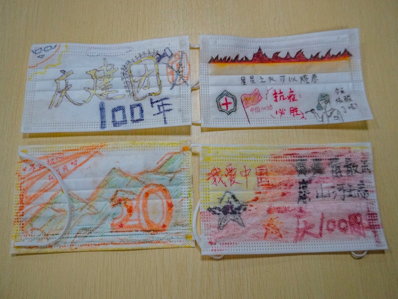 设计图案、勾勒线条、填涂色彩……学生们手握画笔为一张张纯白的口罩“穿上新衣”,不仅传递着他们对未来的向往与期待,也传达着喜迎二十大、庆建团百年的美好祝愿。在活动的最后,本次主题团日活动举行了趣味口罩绘画设计大赛。