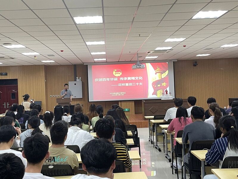 M112教室传来阵阵悠扬的的歌声,原来是2020级金融工程专业90多名同学正在开展“庆团百年华诞 传承黄梅文化”主题团日活动。