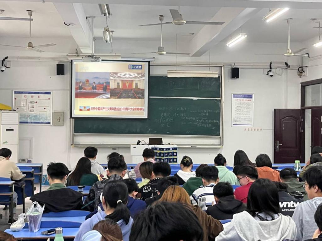 学生通过观看直播,学习了习近平总书记重要讲话精神,重温了共青团艰苦卓绝的奋斗历程,并结合自身实际畅谈心得体会。