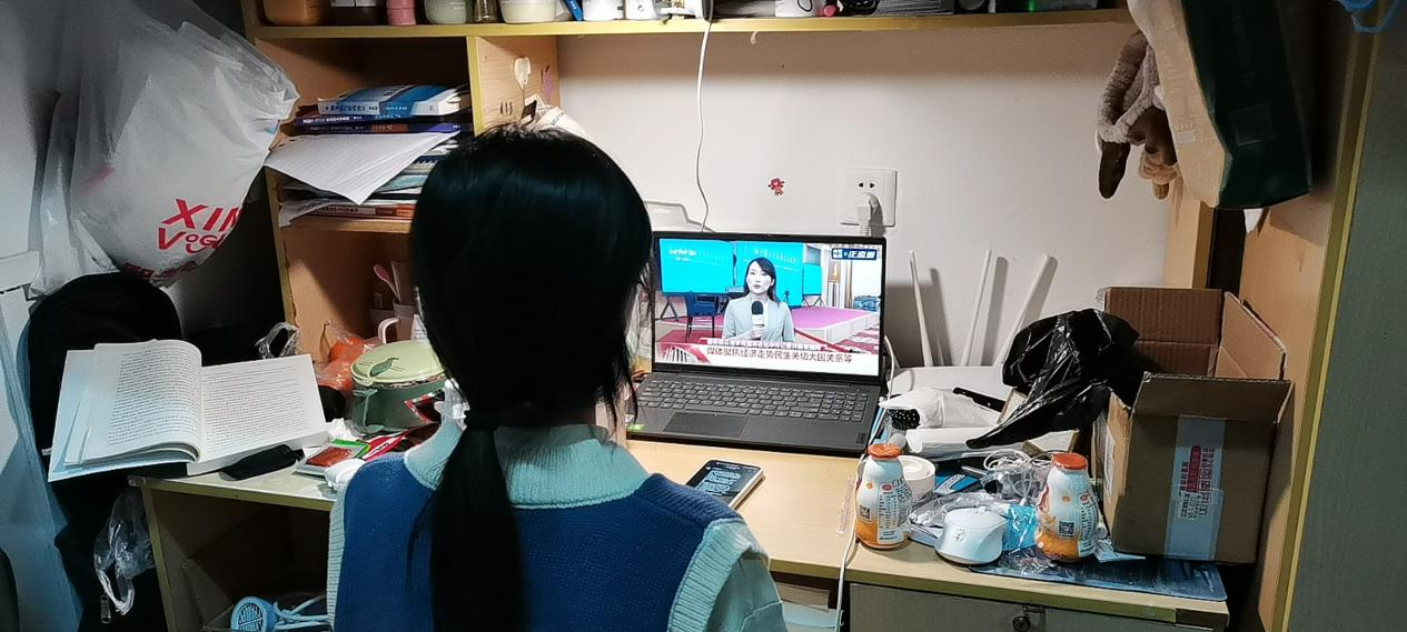 两会期间各界代表和委员们的建议、提案涉及到婚育、民生、女性权益、打拐、防疫、法律法规、教育、网络、财经等各方面,体现出了党和国家对人民群众的关心。通过观看全国两会,同学们纷纷表示从其中了解到众多社会发展现状,认识到身为新时代青年,要提高政治站位,统一思想认识,认真学习贯彻“两会精神”提高自身能力,听党话,跟党走,以当代青年的奋进姿态迎接党的二十大胜利召开,为实现中华民族伟大复兴的中国梦贡献青春力量!(撰稿:孙芮、吴璐璐,摄影:吴璐璐,审核:周毅)