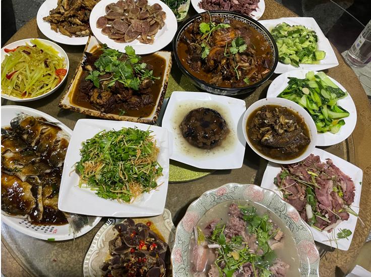 糖荸荠、西湖醋鱼、铁锅炖公鸡……物流管理专业2021(1)班的刘紫璇同学刚“晒”出年夜饭便赢得同学们的纷纷赞扬。精致的摆盘加上丰盛的菜肴正是让这顿年夜饭成功“出圈”的原因。“我们家是开饭店的,虽然平常也能吃到这么多饭菜,但每年最期待的还是除夕的团圆饭。”家在安徽本地的刘紫璇也向班里各地的同学送去了新年祝愿,希望大家虎年如意,学习进步,春天再见!