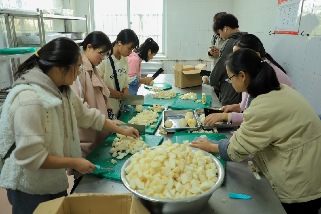 选购食材、熬制饮品、布置场地……为了筹备这次活动,2021级的新生同学们足足忙活了一周。无论是熬制前的洗梨、削梨工作还是熬好后的装杯、运输工作,每个环节他们都安排了对应的学生,在固定的时间点精准负责。为了达到最佳口感,在多次请教父母与查阅资料后,他们细心挑选购买了和田枣、古田银耳以及无核桂圆等多种配料。