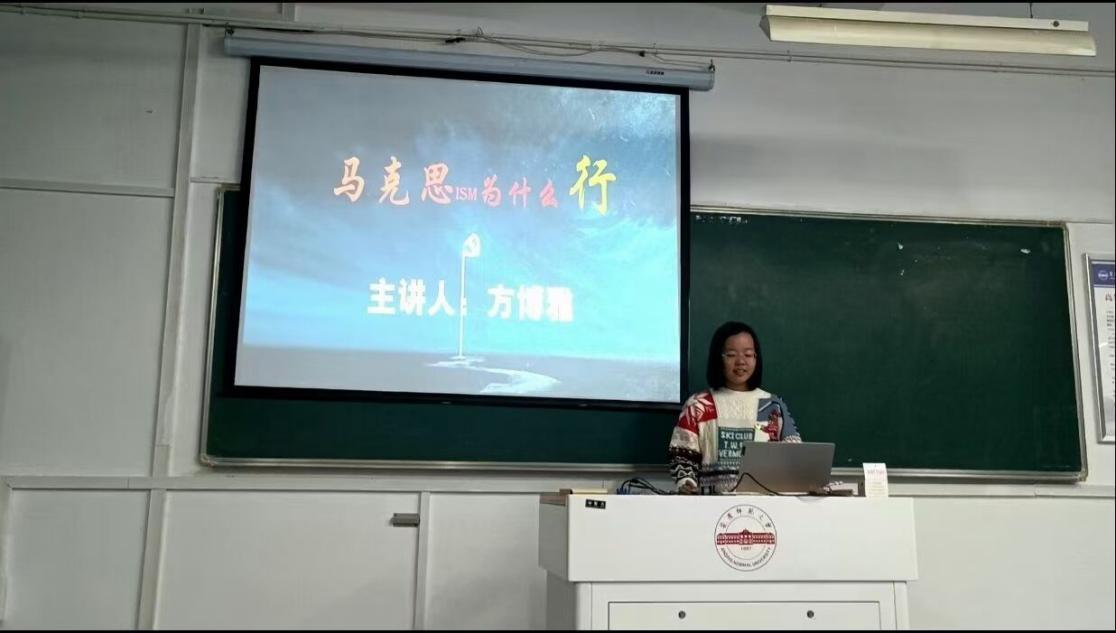 活动中,团支部和班委会成员分别进行PPT演讲。团支书方博雅首先从历史和现实两个角度带领同学们领会马克思主义为什么行。