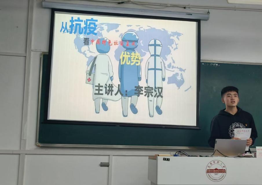 班长李宗汉讲解了疫情中所展示的社会主义制度优越性