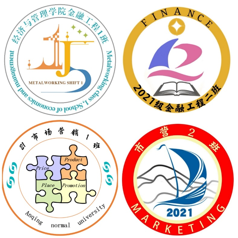 每一个班级的班徽和班旗都有着不同的含义。2021级金融工程专业1班的张琛同学说:“班徽设计的灵感来源是赛车旗手的冲刺旗,所以一开始是按照黑白两种颜色和金融工程一班的‘J’‘G’‘1’来进行的,寓意金工一班勇往直前的精神。” 周衡同学说:“最后定稿的班徽并不是只有黑白,而是结合着不同颜色代表着不同意义来设计班徽,蓝色、橙色、黄色分别代表着真诚、热情、守护,希望我们一起守护金工一班这个大家庭。”2021级金融工程专业2班的陈欣雨同学和况皎洁同学也对班徽做了详细的介绍,“班徽中,四个微笑以中国古代的货币铜钱的圆形方孔钱式呈现,将金工2班的数字‘2’艺术化为帆船形,整体来看,圆形方孔钱和艺术字化的数字2构成了一个奔跑的人形,代表了金工2班的学子奔跑在获取知识的道路上。班徽整体金色,粉色,蓝紫色为主,代表对金融专业美好有前景的祝福”。