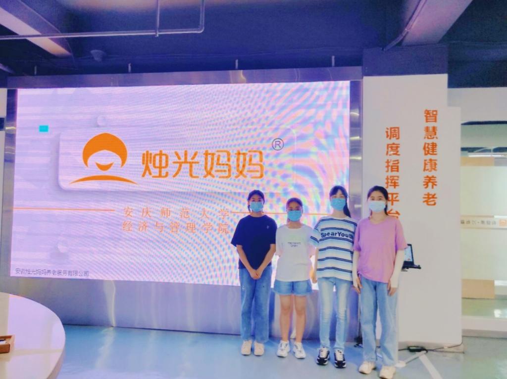 调研小组首先来到安徽八百里科技公司,在管理人员的带领下我们参观了产品研发流程,了解到公司发展历程和品牌理念。其中“烛光妈妈”品牌采用“1+3+N”的模式运行,基于智慧大脑,通过“监管、运营、服务”三大应用支撑中枢,在 N个服务场景中对老年人的身体健康进行检测、提供服务,满足老人和家庭的现代化、科学化和人性化的产业需求。