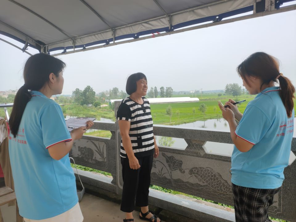 结束了西田坡的考察活动,实践团队来到了蓄洪期受洪涝灾害影响最严重的老观乡街道。实践团队对当地群众进行采访,进一步了解蓄洪期间居民撤离的场景、灾后房屋修缮及农业补助措施等。当实践团队成员和当地居民谈及蓄洪时期大家撤离和灾后国家救助的具体情况时,当地群众表示,开闸蓄洪之前村委会就立马组织村民们撤离,所以每一户都被成功转移到安全地带了。解放军也来到了村庄里,帮助村民从洪涝区撤离。蓄洪之后,农作物的补贴由国家补助和保险公司赔付为主,农民的损失得到了很大部分的补偿。