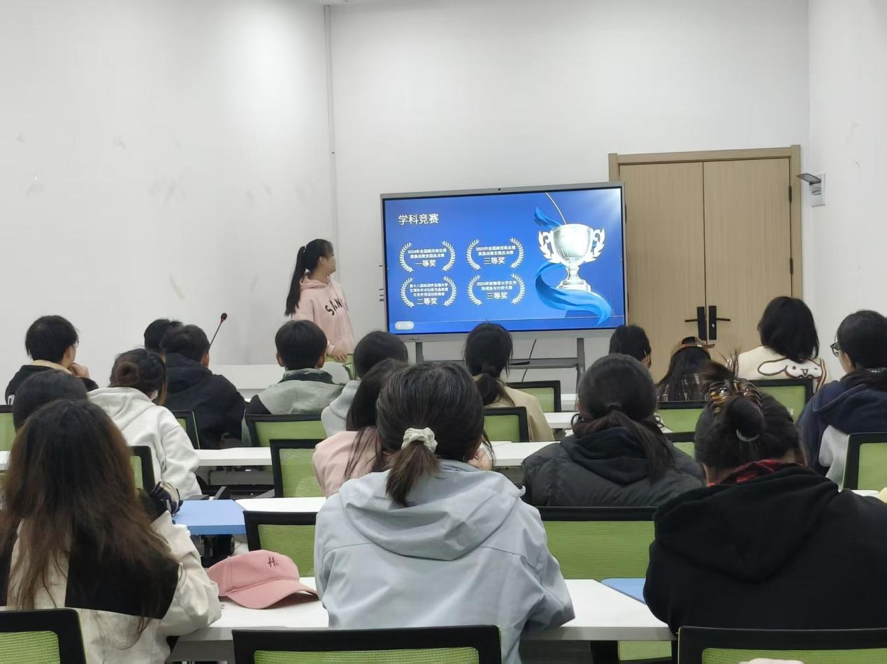 活动现场,2023级财务管理专业彭思怡同学结合个人学业与成长经历,分享了目标拆解式的学习方法以及平衡课程与竞赛的时间管理技巧;2022级物流管理专业朱婧雯同学通过具体案例,讲解了学科竞赛备赛策略和社会实践资源对接方法。两位同学的分享既包含实用方法,也融入了心灵感悟,生动诠释了德智体美劳全面发展的成长路径,引发了在场同学们的共鸣。