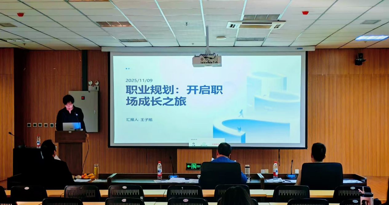 在 M112 报告厅举办“筑梦青春志在四方,规划启航职引未来” 第十九届大学生职业规划大赛院级选拔赛。学院教师郑羽、甄德云、余卫担任评委,近 60 名师生到场观摩赛事。