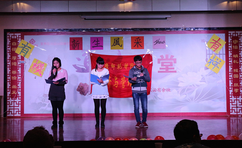 随着主持人的精彩开场,来自2015级的9支晋级队伍依次登场。第一支队伍“磐石队”闪亮登场,他们表演的小品《应聘》,运用极度夸张的手法将应聘企业与求职者之间的种种算计表现的淋漓尽致。接着,“std舞团”为大家带来了舞蹈《劲舞快闪》,“敢死队”表演了相声《校园乱谈》,“乌冬面”队则带来了话剧《童话与现实》。
