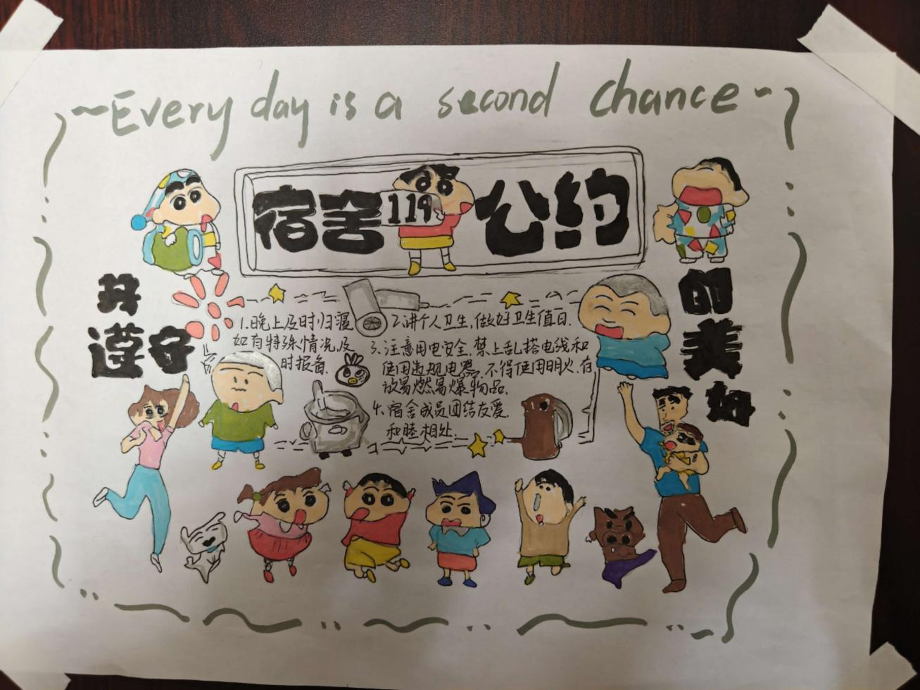 本次大赛以寝室为单位参与,内容涵盖“寝室手抄报设计”与“寝室生活视频拍摄”两个环节。在手抄报设计中,同学们将个人志趣、生活态度与理想追求融入创作,以工整的字迹书写寝室公约与优良室风,用巧思妙想的图案展现各具特色的寝室文化。