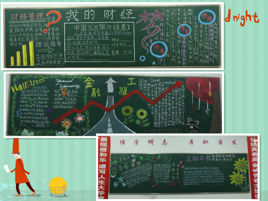 为主题 ,凭借富有新意的黑板报、内涵丰富的班徽和积极向上的教室装饰获得了一等奖的好成绩。在教室评比过程中,C501、C403、C506室分获前三名。