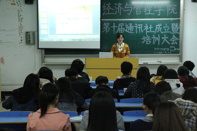 第十届通讯社成立暨培训大会如期举行。应邀本次活动的嘉宾有经管院第九届通讯社社长周颖、第二届记者团团长曹曦、校广播台编辑姜健及校学生会通讯社社长吴义伯。经管院学生会主席杨健及学生会各部部长参加了本次大会。