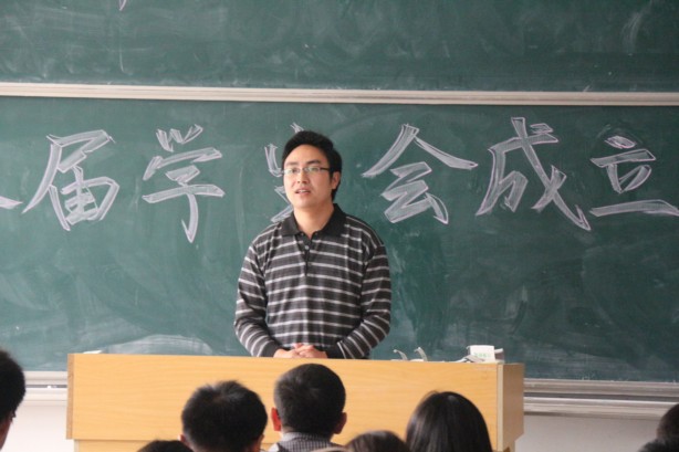 在文溯楼401教室举行第八届学生会成立大会。学院党总支副书记徐晓宁老师、团总支副书记张军老师级第八届全体学生会成员参加会议。