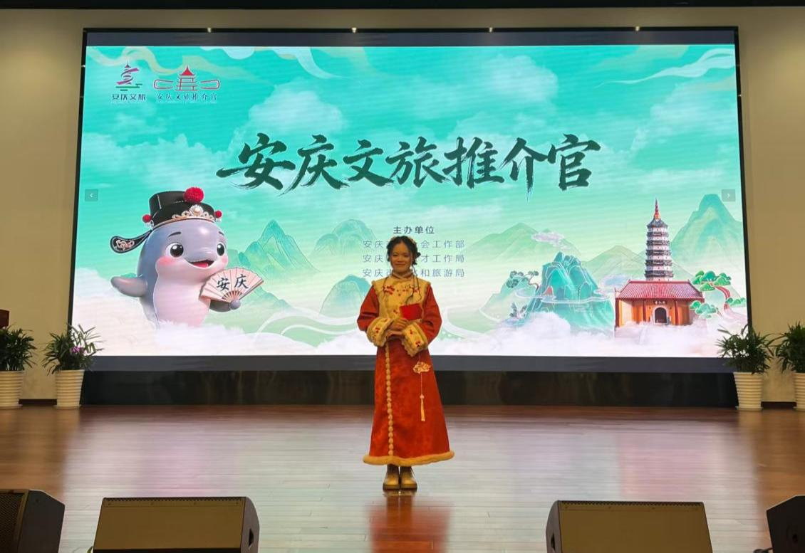 决赛中,选手们围绕安庆的历史文化、自然景观、非遗民俗等主题展开生动讲述。阮皇明舒从流经安庆的长江切入,将这条中华民族的母亲河与安庆这座历史文化名城的命运紧密相连,以振风塔、迎江寺等标志性元素为脉络,描绘出一幅古今交融、生生不息的安庆画卷,其生动演绎赢得了评委与观众的一致好评。赛后,阮皇明舒表示,作为一名在安庆学习的留学生,她深深感受到这座城市深厚的历史底蕴与蓬勃的现代活力。她希望以此次获奖为起点,未来能成为文化交流的使者,用自己的语言和方式,向更多国际友人及年轻群体介绍安庆,讲述这里的长江故事、黄梅戏韵与人文风情。