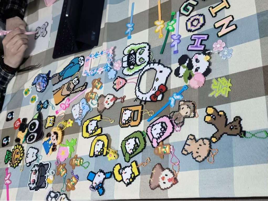活动以拼豆手工制作为载体,现场准备了拼豆、模板、镊子等材料工具。活动开始后,协会理事围绕制作流程及注意事项进行讲解示范,帮助同学们快速掌握技巧。随后,同学们围绕卡通形象、字母图案及个性化设计开展创作,在轻松愉悦的氛围中交流想法、分享经验,作品呈现出较强的创意性与个性化特征,现场互动充分、氛围融洽。