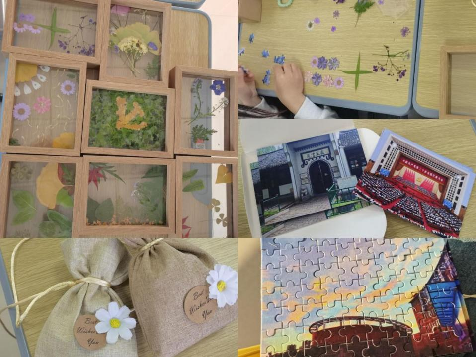首先,同学们在辅导员老师的带领下一起学习党的二十大报告中的金句。朗读着这些金句,同学们感受颇深,纷纷发表内心感受,畅谈未来目标;接着,同学们动脑拼图,制作香包,用校园中的金秋落叶绘制出一幅幅作品。有的同学拼出党徽、有的同学拼出校园风光……活动期间,同学们放下手机,积极动手,相互交流,欢声笑语间,热闹非凡。