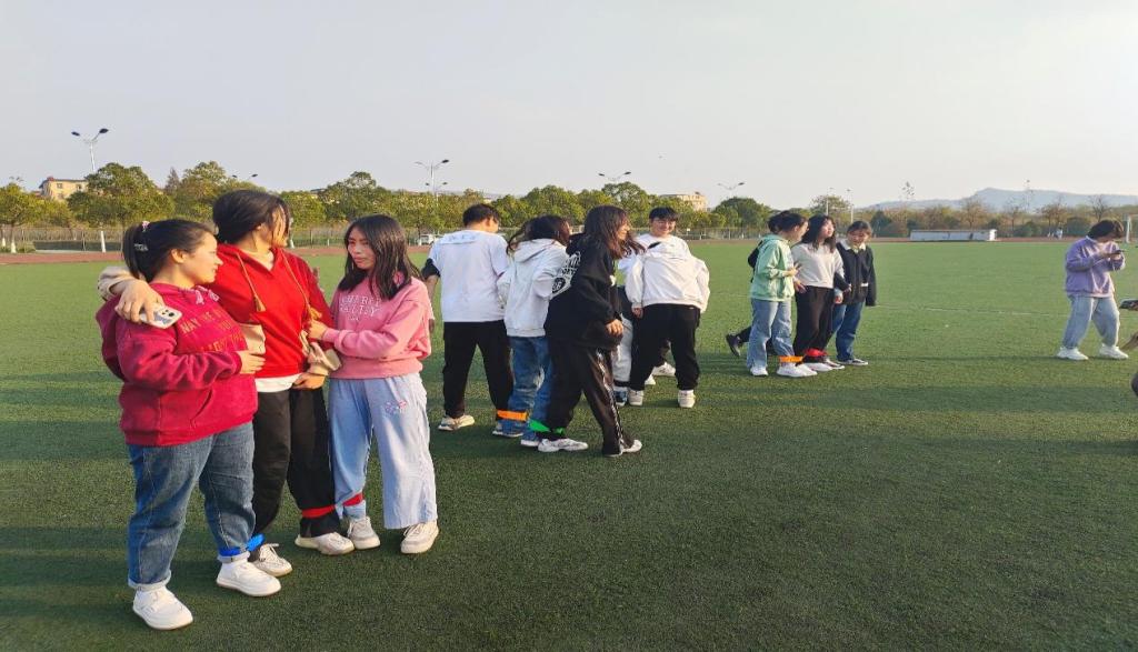活动第二部分,班长詹智和学习委员杨静担任裁判开展了红色主题活动:“保卫胜利”撕名牌游戏。同学们来到南门操场上,通过你划我猜、三人四足、踩气球等一系列形式进行撕名牌游戏。活动现场氛围热烈,同学们热情高涨,不仅发挥了各自才智,也培养了团结协作、坚持不懈等精神。